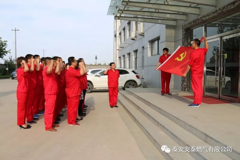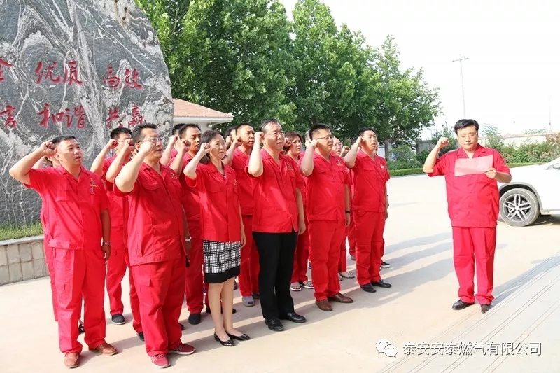 2018年6月22日,在國泰民安的泰山腳下,在泰山玻纖黨委委員、副總經(jīng)理、安泰燃?xì)舛麻L趙恒剛的帶領(lǐng)下,支部全體黨員佩戴黨徽、舉起右手、握緊拳頭、面對(duì)鮮紅的黨旗莊嚴(yán)宣誓。通過此次重溫入黨誓詞活動(dòng),激發(fā)了全體黨員的榮譽(yù)感、責(zé)任感和使命感,增強(qiáng)了黨性觀念,更加堅(jiān)定了全體黨員立足崗位、創(chuàng)新奉獻(xiàn)的信心和決心。公司領(lǐng)導(dǎo)班子全體成員參加了重溫誓詞活動(dòng),更加鼓舞了士氣,振奮了民心,增強(qiáng)了廣大黨員的榮譽(yù)感和責(zé)任感。