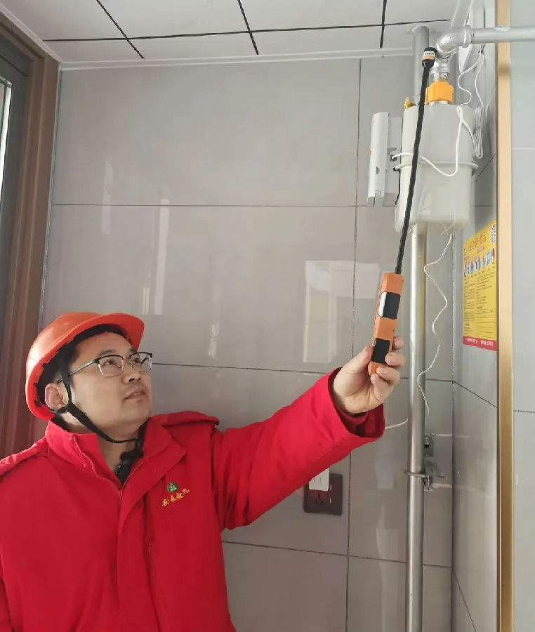 02入戶后,燃?xì)獍矙z人員使用專業(yè)儀器,逐一檢查燃?xì)夤艿澜涌诩叭細(xì)饩叩热細(xì)庠O(shè)施是否漏氣或存在安全隱患,同時向用戶講解燃?xì)獍踩脷庵R。