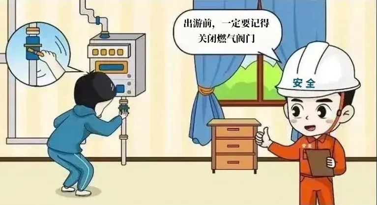 出游前,一定要記得關(guān)閉燃?xì)忾y門(mén),防止燃?xì)庖馔庑孤┮l(fā)安全事故: