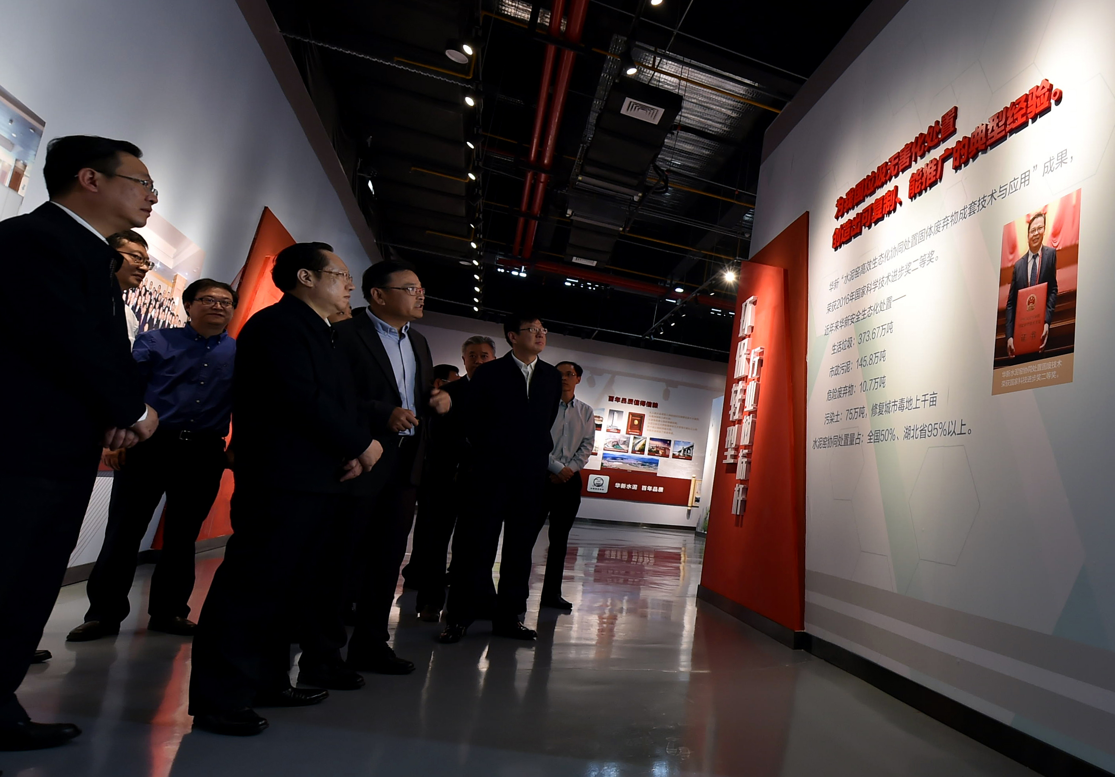 當(dāng)天上午11時許,在湖北省政府秘書長別必雄、黃石市市長董衛(wèi)民等陪同下,王曉東省長一行驅(qū)車來到華新水泥舊址博物館。公司黨委書記、總裁李葉青,公司黨委副書記、執(zhí)委、副總裁劉鳳山等陪同大家參觀了華新舊址部分廠房設(shè)施,并觀看了“百年華新轉(zhuǎn)型升級高質(zhì)量發(fā)展圖片展”。在參觀過程中,李葉青總裁簡要介紹了華新110多年發(fā)展歷程,重點(diǎn)匯報了近年來華新堅(jiān)持創(chuàng)新驅(qū)動、綠色發(fā)展理念,積極開展保護(hù)自然及長江生態(tài),實(shí)施環(huán)保轉(zhuǎn)型、一帶一路、裝備制造、電商創(chuàng)新、高新建材、產(chǎn)業(yè)扶貧等方面的情況。